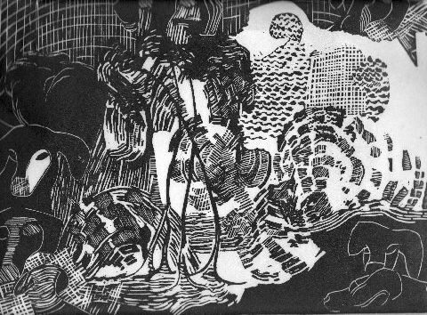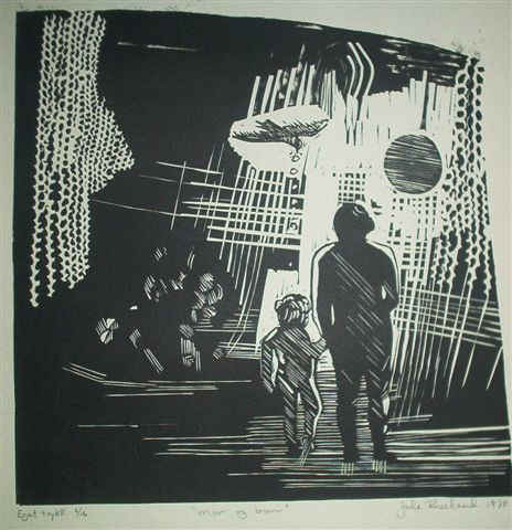 88.Det evinneligelandskap II 10 1972 B&W linocut