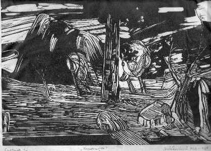 87.Det evinneligelandskap I 10 1972 B&W linocut