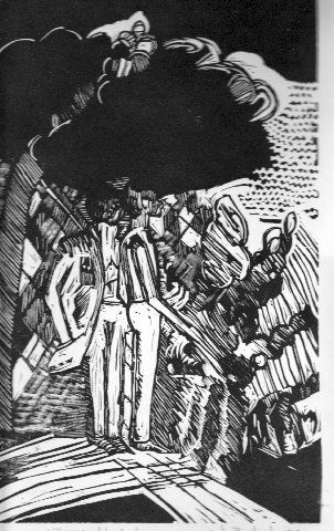 4.Fandens lek 10 2 1968 B&W 17 x 8 wood-cut