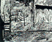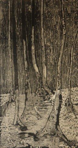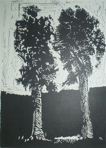 27.Lys mellom trærne 20 1970 B&W 21 x 33 linocut
