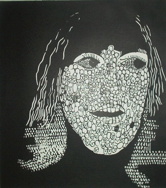 96.Hvem er jeg? I 10 1972 B&W 20 x 20 linocut